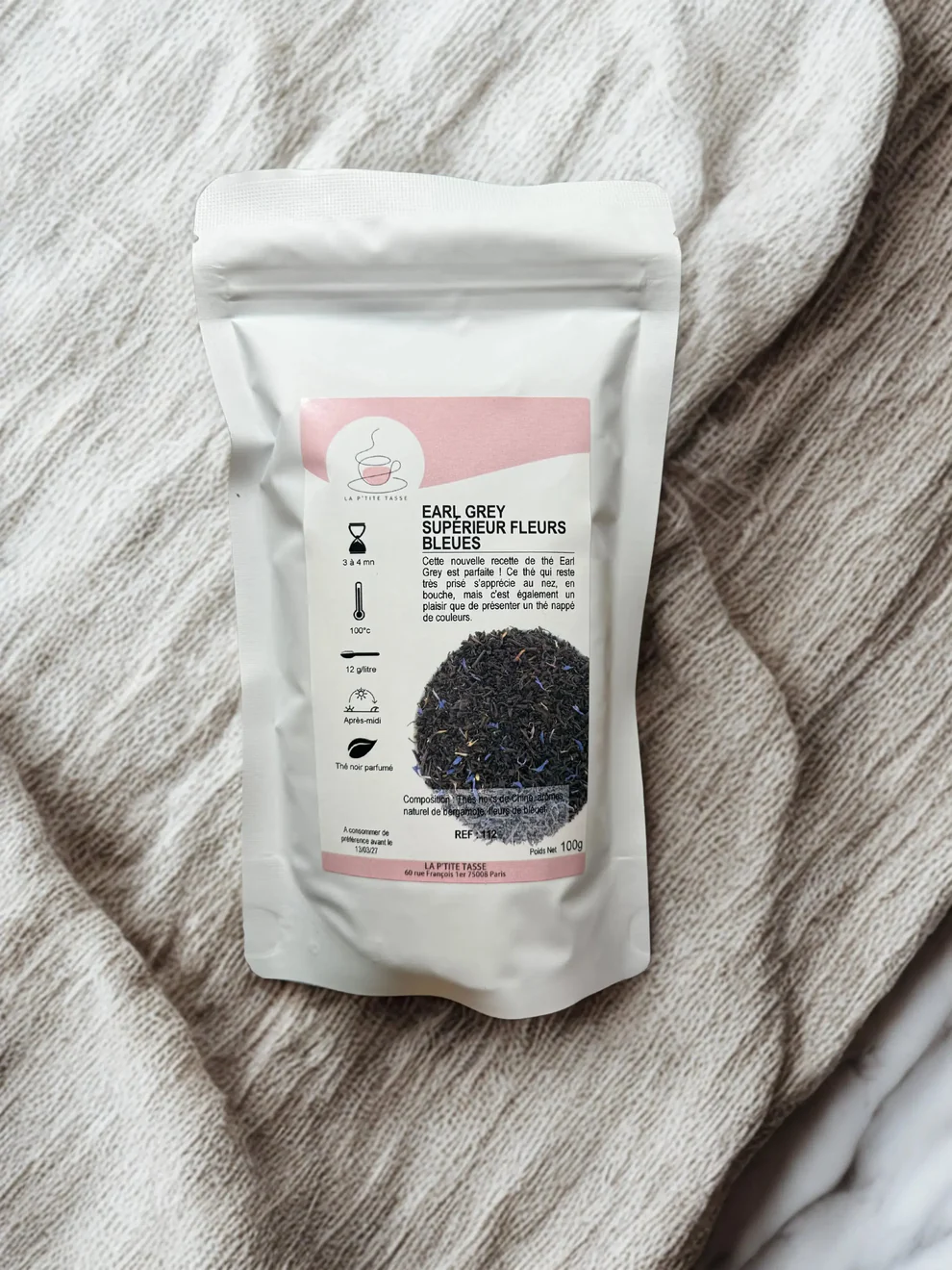 Élégant, équilibré et intemporel — notre Thé Noir Earl Grey Supérieur Fleurs Bleues incarne la tradition britannique avec une touche florale unique signée La P’tite Tasse.